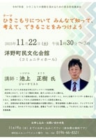 ひきこもりに対する理解を深め、現在、ひきこもりに悩む人が相談しやすい環境を整えることを目的に、地域で支え合うきっかけづくりの一環として、講演会を開催します。
